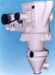 The material is fed into the grading chamber by the rotary valve beside the upper cylinder through the feeding port. Dispersion and classification beside the horizontally installed rotor. The coarse powder is thrown to the wall of the cylinder and moves downward, and is blown by the secondary air at the air grid and the primary air of the central pipe. The fine powder is separated from the coarse powder again and sent to the rotor for classification. Finally, the coarse powder moves downward and is discharged out of the machine through the rotary valve on the lower cylinder. The fine powder passes through the gap between the rotor blades and is sent out of the machine through the exhaust pipe. The exhaust gas in the trap is released to the atmosphere by the fan.