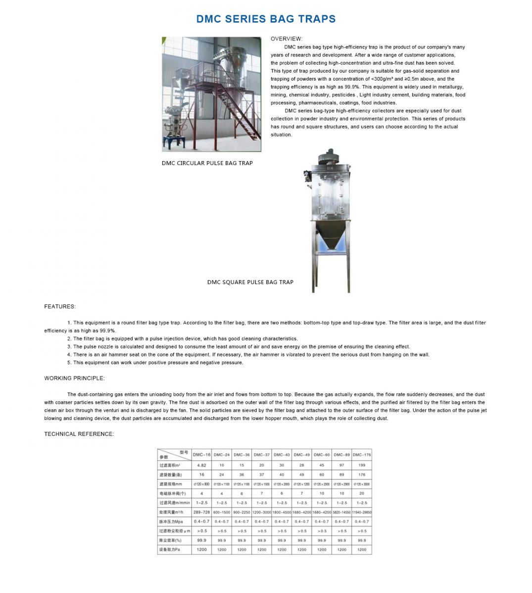 Note: Our Company Also Produces Cartridge Type Dust Collectors. Cartridge Dust Collector Parameters