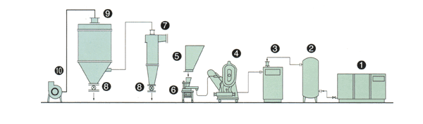 The adiabatic expansion of the pressure gas produces a cooling effect, so that the pulverization is carried out at a low temperature, so it is especially suitable for the pulverization of low melting point and heat-sensitive materials.